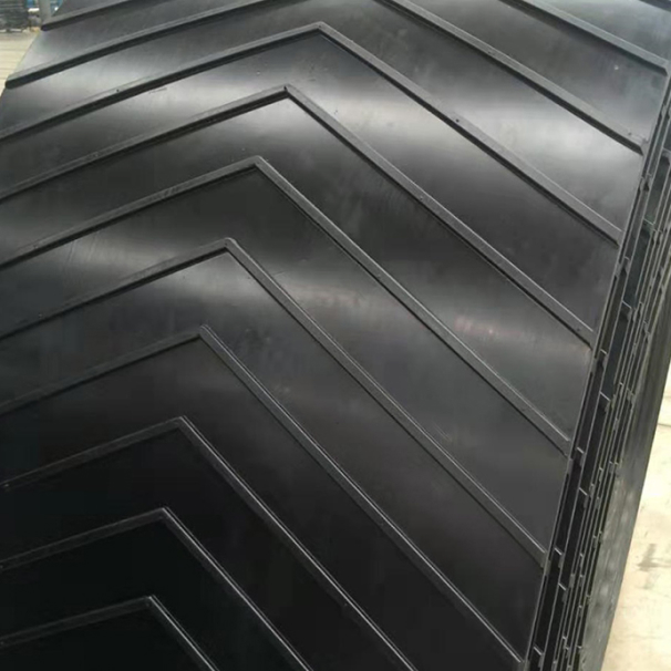 花纹输送带是由带体和花纹部分组成,由于运输的物料不同和输送机倾角大小,要求花纹的形状和高低深浅不同。特点:适用于倾角0°-45°